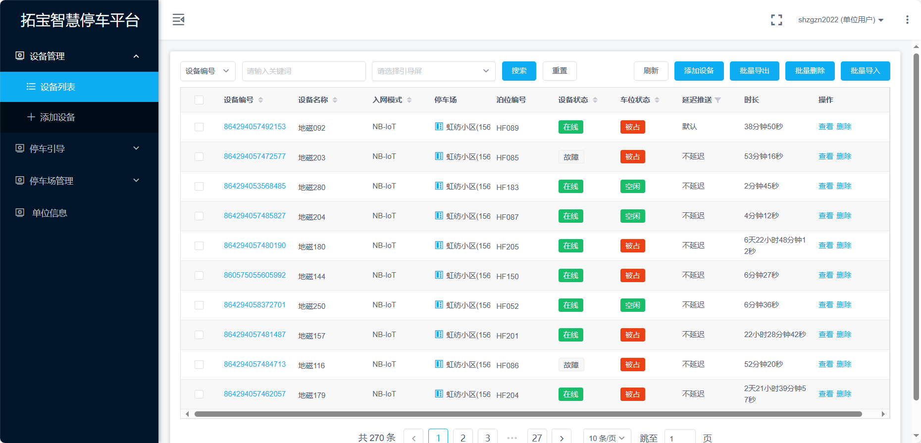 TPI 园区停车引导平台为壹号国际物联网平台体系重要组成部分,综合运用了“物联网+云计算+大数据”等新一代信息技术,通过对停车位安装地磁车位检测器,建立一体化的停车后台管理系统,实时进行停车数据采集、报送,从而实现区域停车资源智能化管理,通过电子引导屏显示车位资源,快速引导车辆合理停放,提高停车泊位的利用率和周转率。