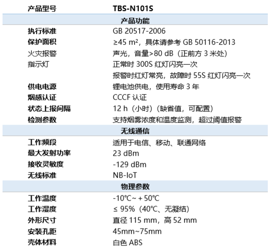 为进一步满足市场多样化需求,优化消防解决方案,壹号国际科技NB-IoT新品烟感TBS-N101S正式投放市场。 TBS-N101S是独立式无线感烟报警器,基于NB-IoT标准,具备远距离无线通信能力,无需布线、即买即用;可同时检测烟雾浓度和温度,提升检测准确率;采用新方案设计,有效确保产品电池使用寿命更长;支持声光、电话、短信、平台等多种报警方式,有效预防火灾发生。